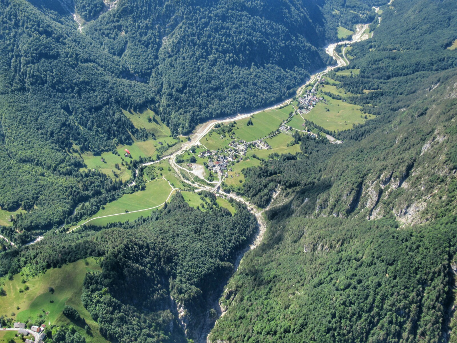 Pero todo se termina. Poco a poco fuimos descendiendo y acercándonos al núcleo de Log Pod Mangartom. La idea era aterrizar en un enorme campo junto a la carretera principal.