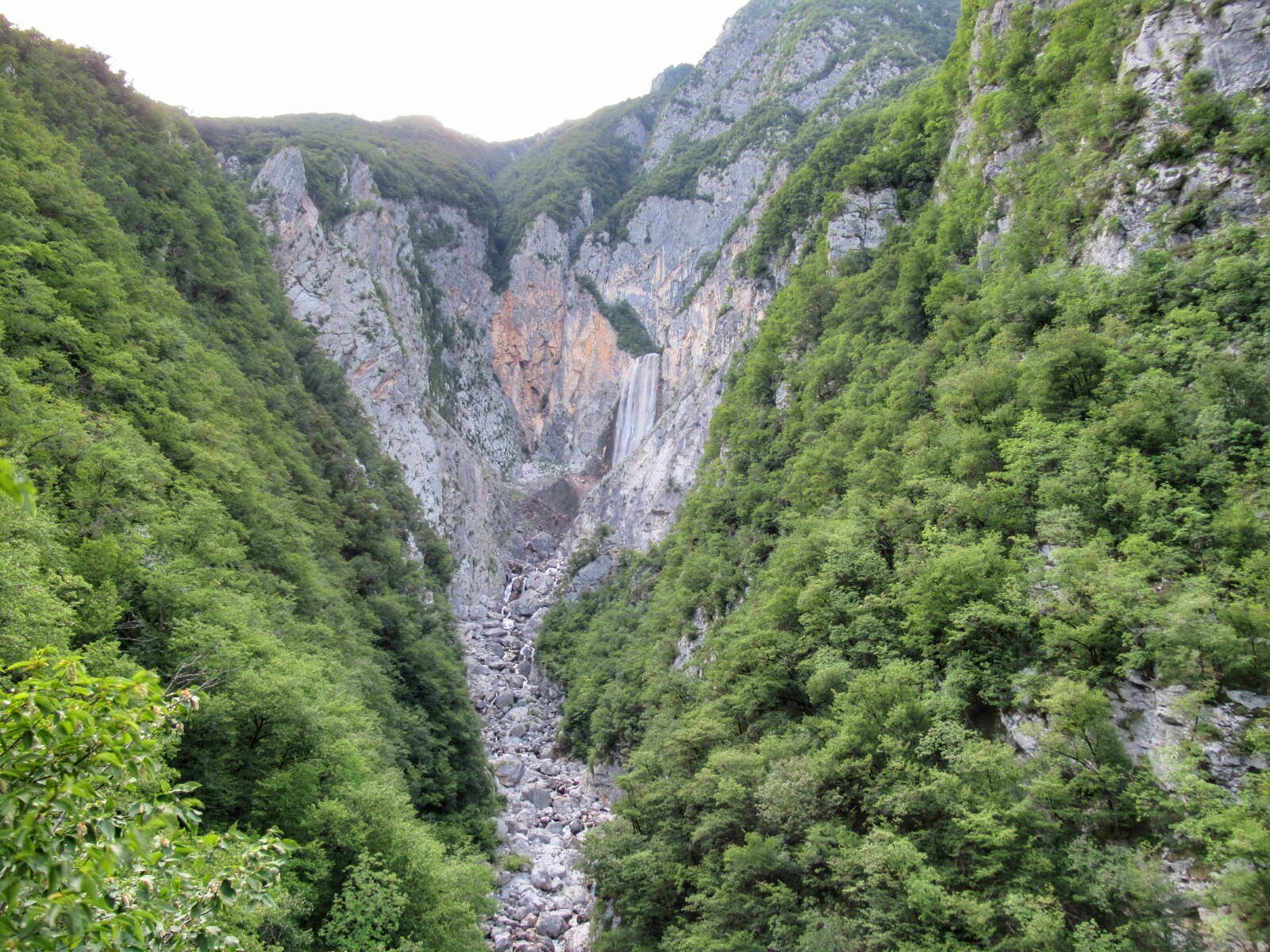 De una cascada coqueta pero en miniatura pasamos directamente a la cascada más alta de Eslovenia: Slap Boka. Sus dimensiones no dejan indiferente: ¡106 metros de caída y hasta 30 metros de anchura! Una pasada, vamos.