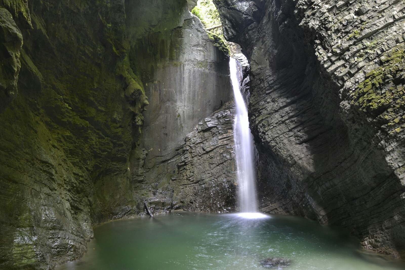 No es ni de lejos de las más altas de Eslovenia (tiene tan solo 15 metros de caída), pero resulta una vista alucinante por el entorno en el que se encuentra. Se puede, además, bajar fácilmente de la pasarela hasta los pies de la charca (¡e incluso darse un baño!).