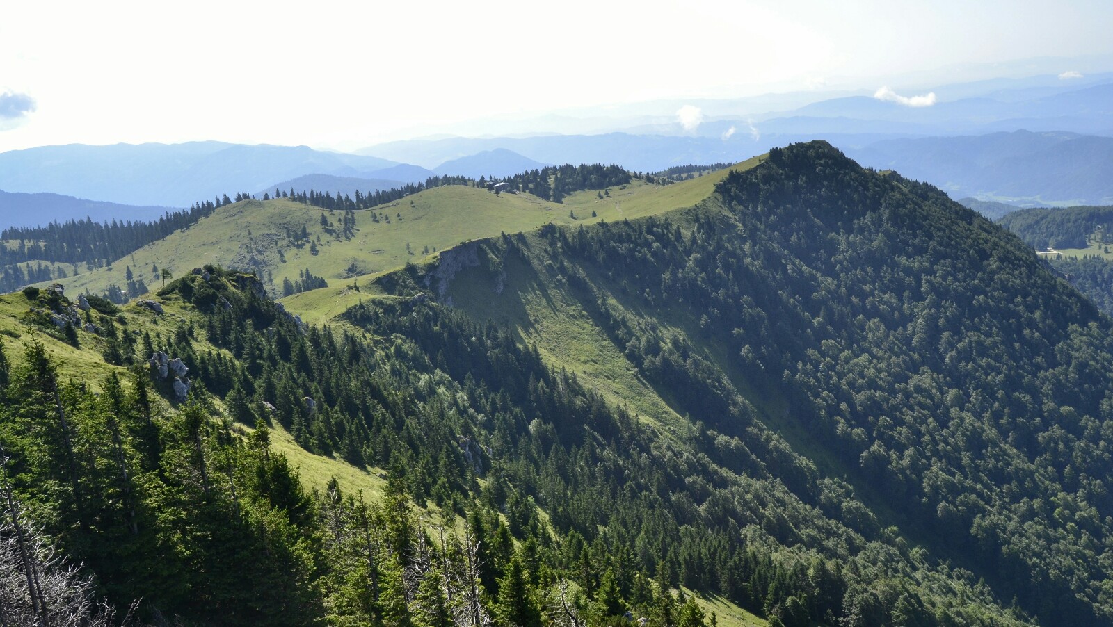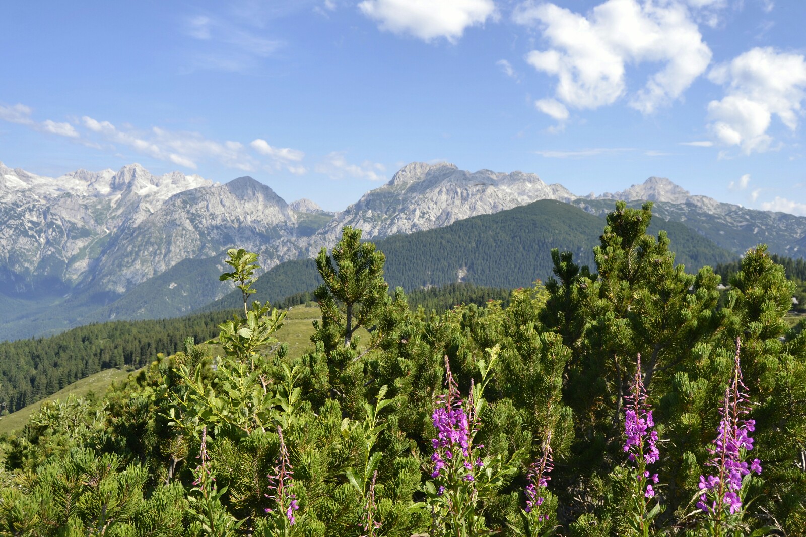 Desde ahí es desde donde se pueden ver, más en su totalidad, las montañas rocosas de los Alpes de Savinja.