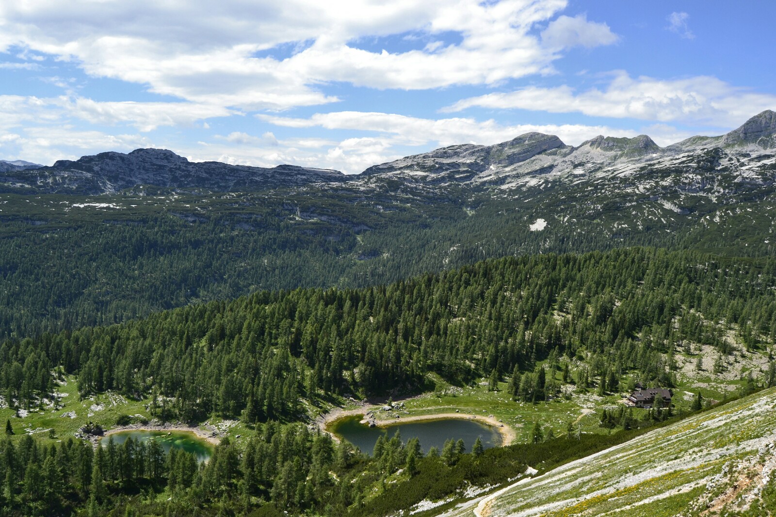 Por haber elegido el desvío de la derecha me comí más de 200 metros extra de desnivel de subida (y por lo tanto de bajada también), pero gracias a eso me topé con esta extraordinaria vista del refugio y del Dvojno Jezero…