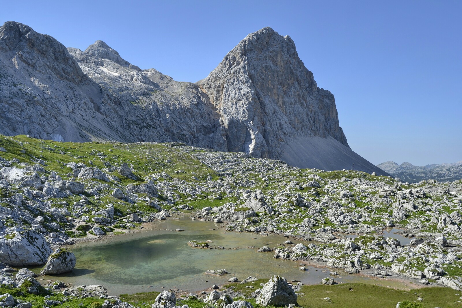 Las vistas, una vez más, eran soberbias (¡cima del Triglav incluida!). La sensación térmica era bastante buena así que decidí que era el lugar ideal para descansar un rato y almorzar.