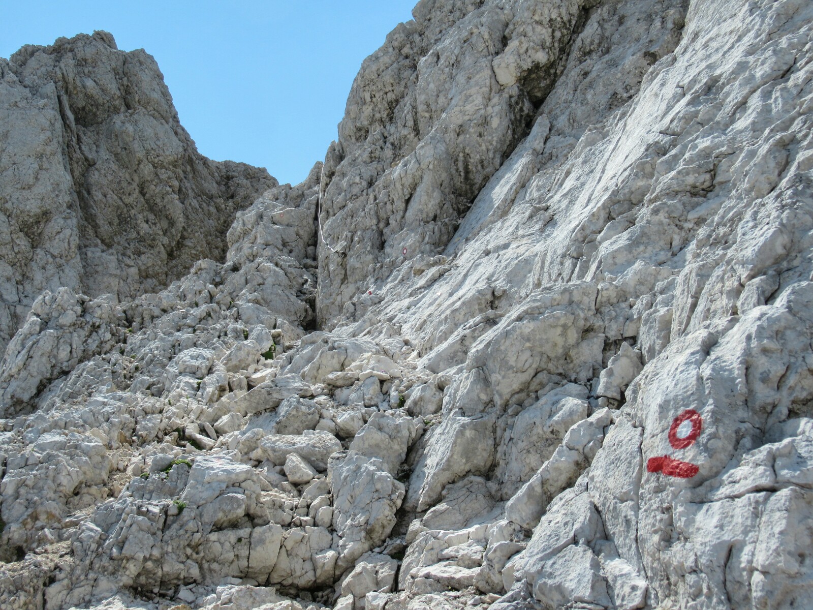 La subida a la roca empezó directamente con cable, por un desfiladero muy estrecho y en pendiente de subida que se iba volviendo a cada paso más traicionero y empinado. Pero bueno, nada que no se pueda hacer poco a poco y con concentración.