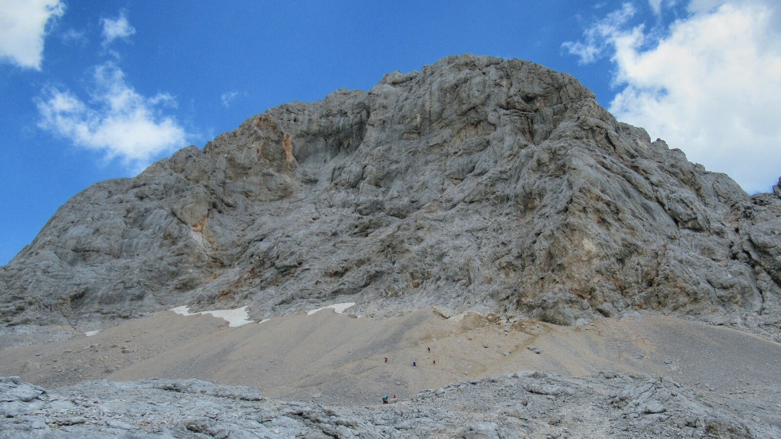 En fin, volviendo a la montaña… Este primer tramo desde que se sale del refugio es la parte fácil, pero pronto empezaremos a distinguir la base de la subida final a esta mole rocosa. Para llegar a ella hay que trepar primero por una fuerte pendiente de pequeñas rocas sueltas (sí, de esas pendientes en la que cada tres pasos retrocedes uno… ¡un horror!).