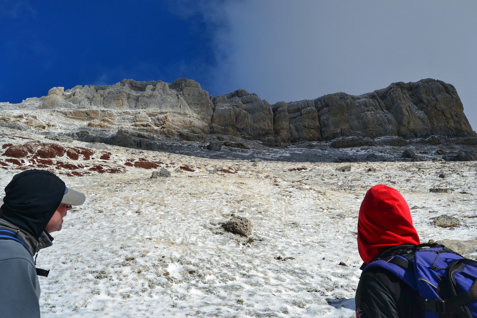A pesar de ser aún octubre, nos encontramos con nieve en la zona de la canal, donde además hay que recurrir un poco a trepar y ayudarse con las manos para llegar a lo alto de la «estructura del castillo».