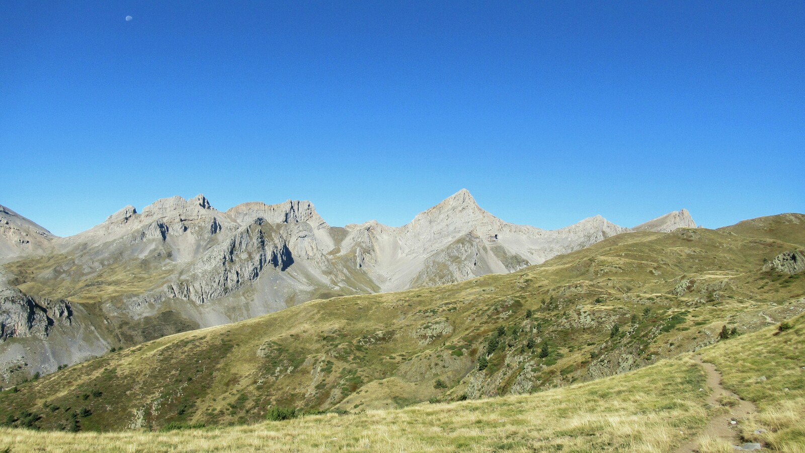 Yo opté por ir hasta el dolmen, pero no siguiendo el camino estipulado hacia el oeste… no sé porqué se me metió en la cabeza que había que seguir primero hacia el norte ganando algo más de desnivel, por lo que acabé caminando por un sendero a más de 1900 metros de altitud y que va por la frontera con Francia.