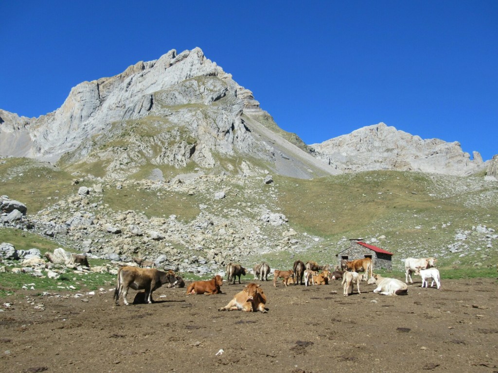 Poco a poco, y compartiendo el lugar con el ganado que disfrutaba de sus últimas semanas antes de que el invierno llegue de golpe y se tengan que trasladar, llegamos al Parking de La Mina con más de 13 kilómetros de feliz pateada por el Pirineo Occidental.