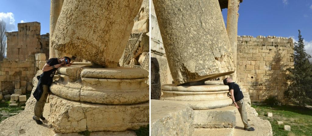 … y otras veces haciendo el payaso. Aunque habían llegado algunas personas, estábamos casi solos, por lo que podíamos campar libremente a nuestras anchas como emperadores de Baalbek sin ningún tipo de pudor o vergüenza.