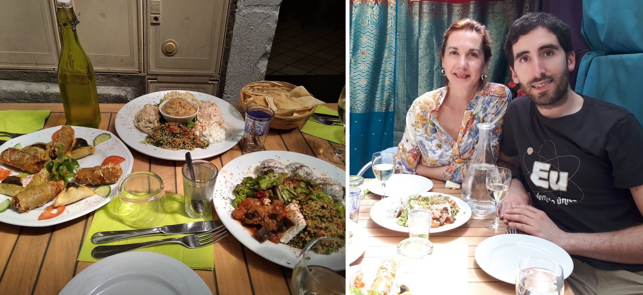 Historia, pueblos, ciudades, cuevas, montañas, ruinas, pueblos… Todo eso está muy bien, pero hay un sentido que en Líbano va a a disfrutar desde el primer al último minuto: el gusto. La comida libanesa nos ha parecido estupenda (de hecho, este viaje se empezó a fraguar en un restaurante libanés de Pau, Francia).