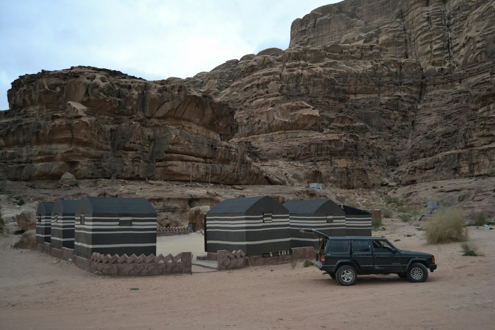 Tras unos 20 minutos conduciendo por arena llegamos al Wadi Rum Green Desert Camp. Está formado únicamente por una jaima grande que hace de salón y comedor y 8 jaimas pequeñas para los huéspedes.