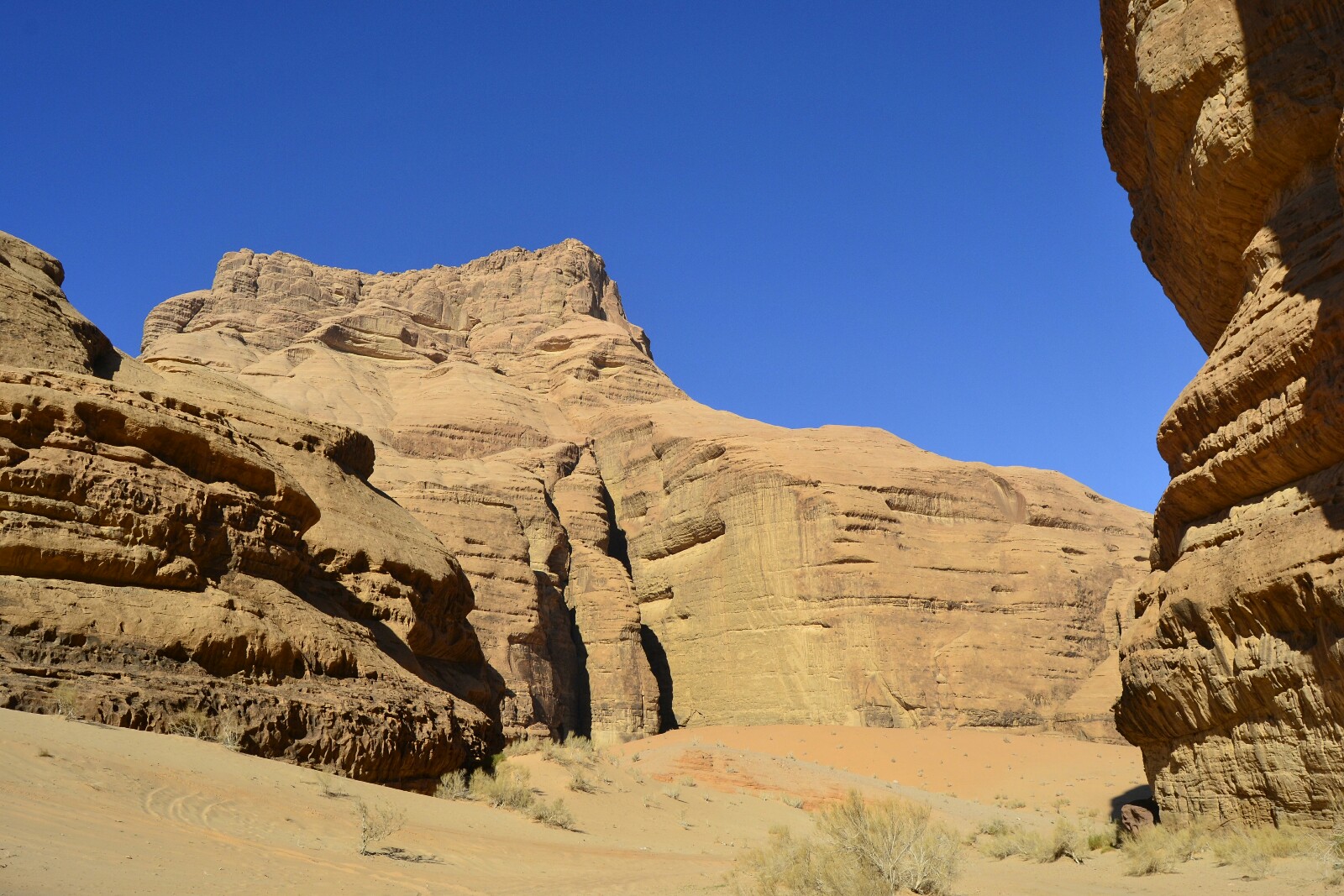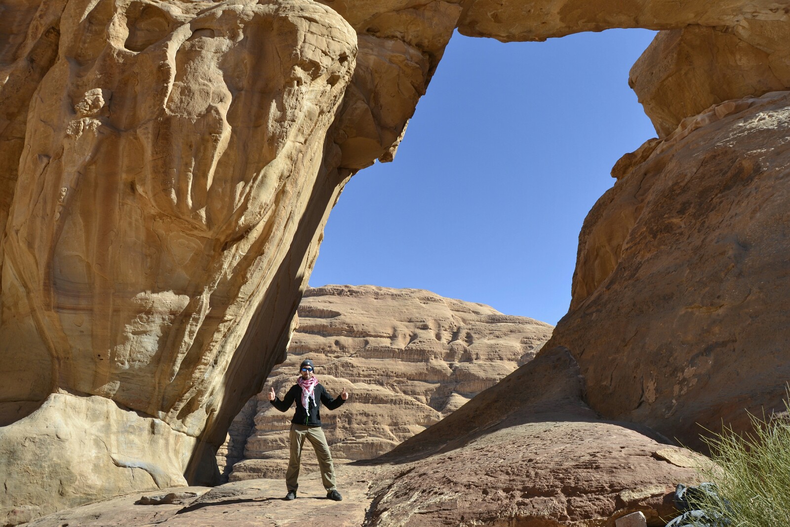 Desde luego el contraste de piedra y arena rojiza con el azulón del cielo del desierto era lo que nosotros habíamos venido a ver… ¡y lo conseguimos!