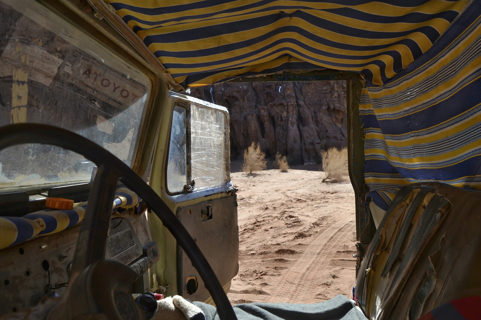 Mientras babeábamos con la vista, apareció Nadjah en su coche para recoger a los belgas que se iban a pasar la Nochevieja a Aqaba. De paso, nos contó que en esa llanura se habían rodado varias escenas de «Marte«, la película de Ridley Scott protagonizada por Matt Damon.