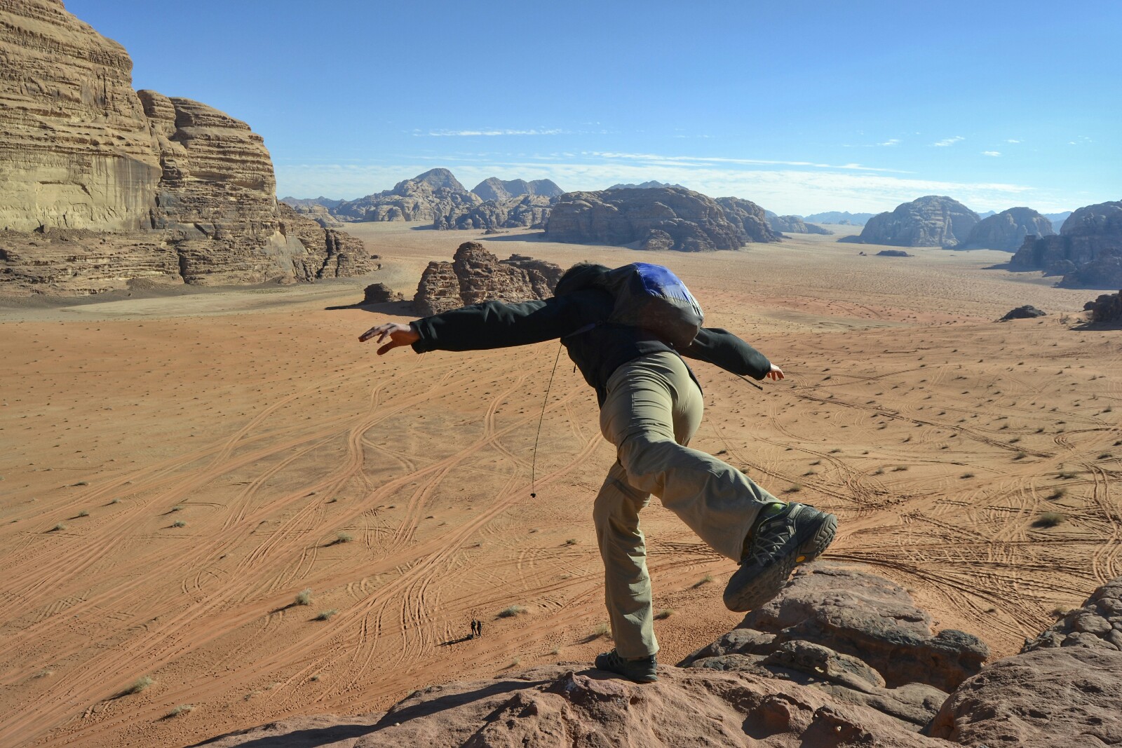 Cogí la cámara, me calcé, y subí a la roca de la que nos había hablado Nadjah. Estaba a pocos metros de mi tienda y no tardé ni 3 minutos en llegar a lo más alto trepando un poco al estilo cabra.