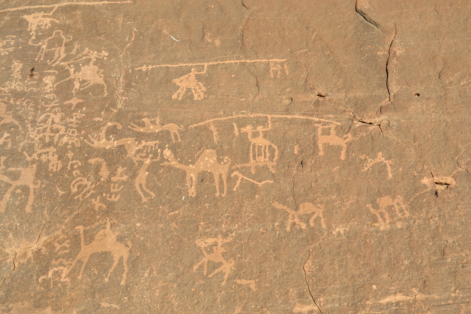 Llegó la hora del mercadillo (bueno, no, pero casi). Paramos en una zona con unas formaciones rocosas muy curiosas decoradas con petroglifos de hace 4000 años representando humanos, animales y grupos de camellos.