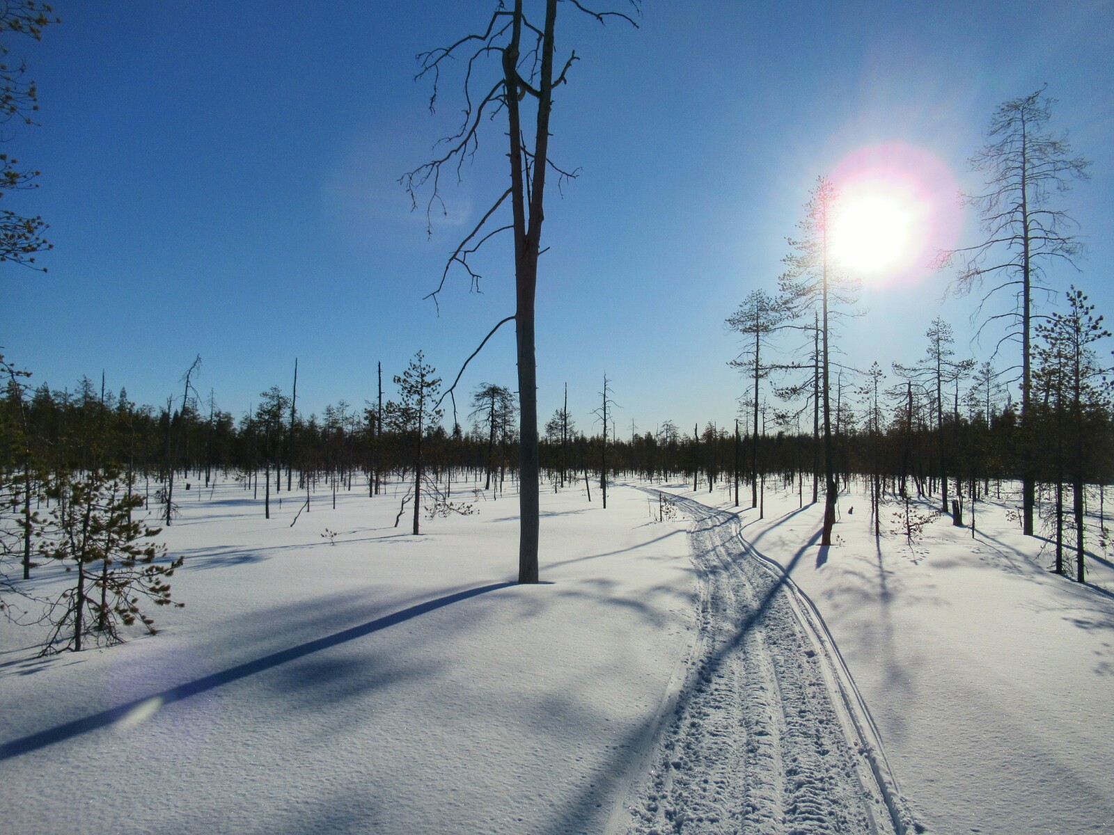Salimos esquiando, como es habitual, desde el portal de casa, y al momento estábamos atravesando un típico bosque finlandés.
