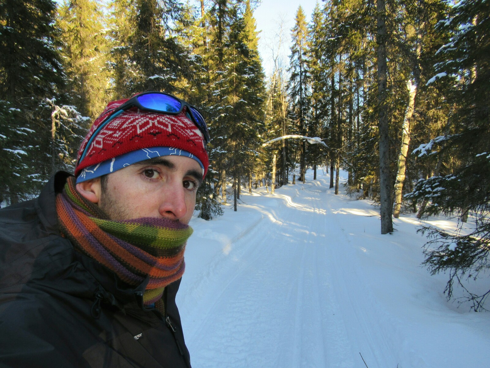 Aunque la temperatura en esta primera mitad de la etapa debía rondar tranquilamente los 15 grados bajo cero, no pasé nada de frío porque el movimiento continuo del esquí (junto con la ropa técnica) mantenían mi cuerpo en continua generación de calor.