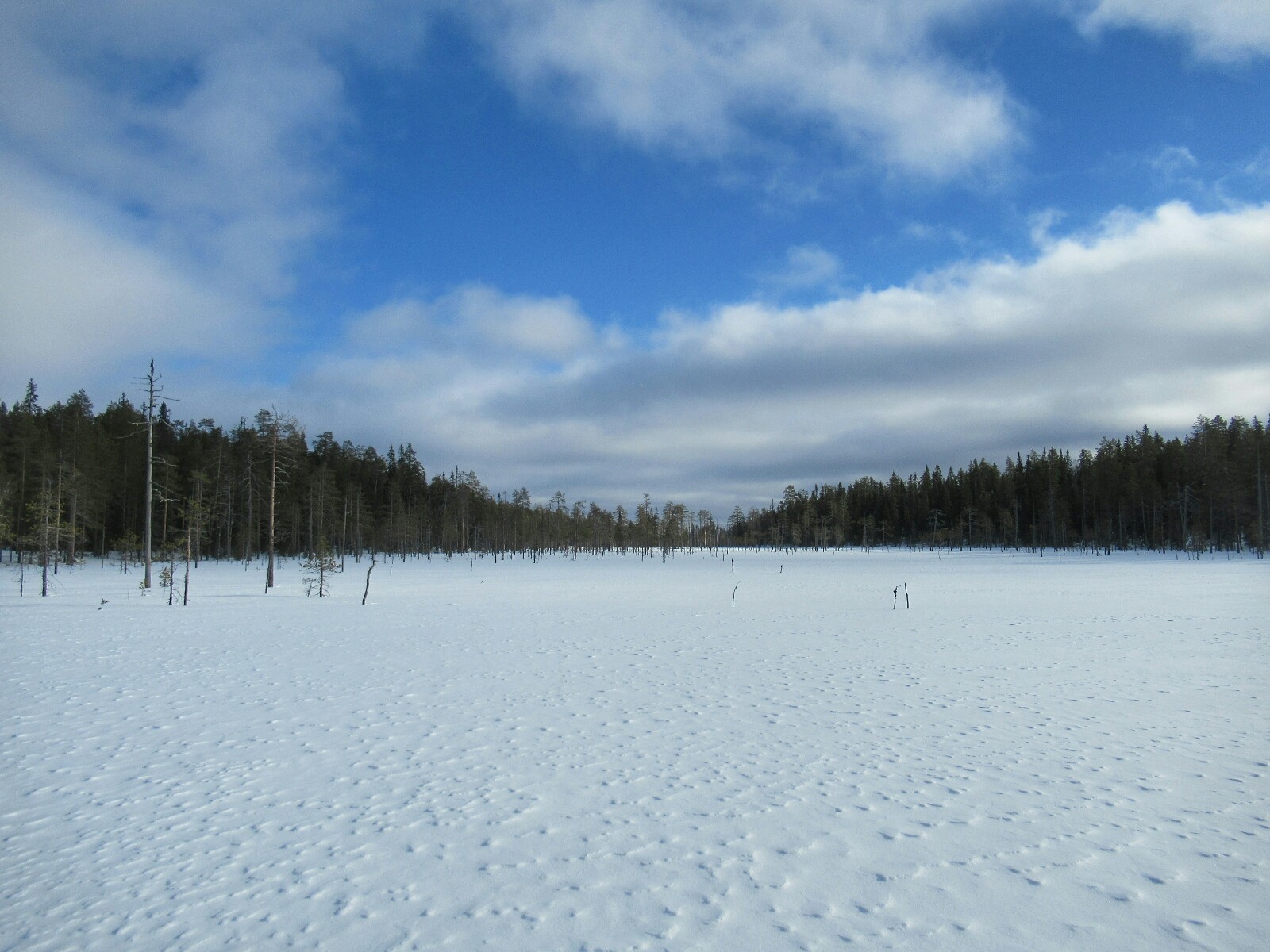 Para continuar, tuvimos que volver hasta el desvío de Teerilampi, y seguir esquiando hacia el sur, con algunas pequeñas subidas y bajadas en el primer tramo de bosque.