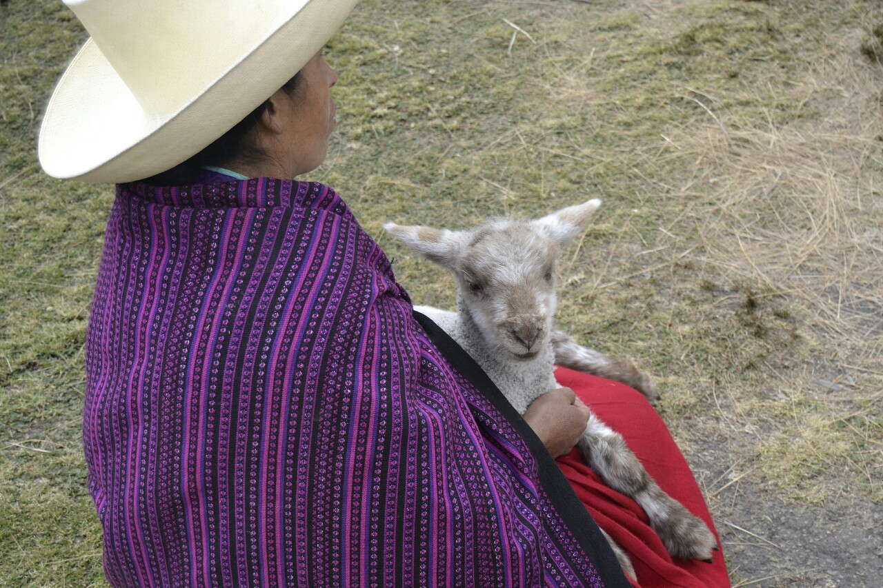 Al salir había un grupo de cholitas vendiendo algo de comida, artesanía e incluso ofreciendo corderitos para que nos hiciésemos fotos con ellos.