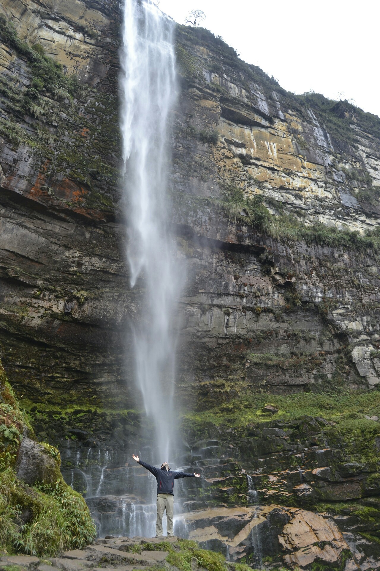 Y de repente y sin previo aviso, empezó el potente ruido del agua. Sin darme cuenta ahí estaba yo, frente al primer salto de agua de la Catarata de Gocta, y como suponía… ¡No había nadie!