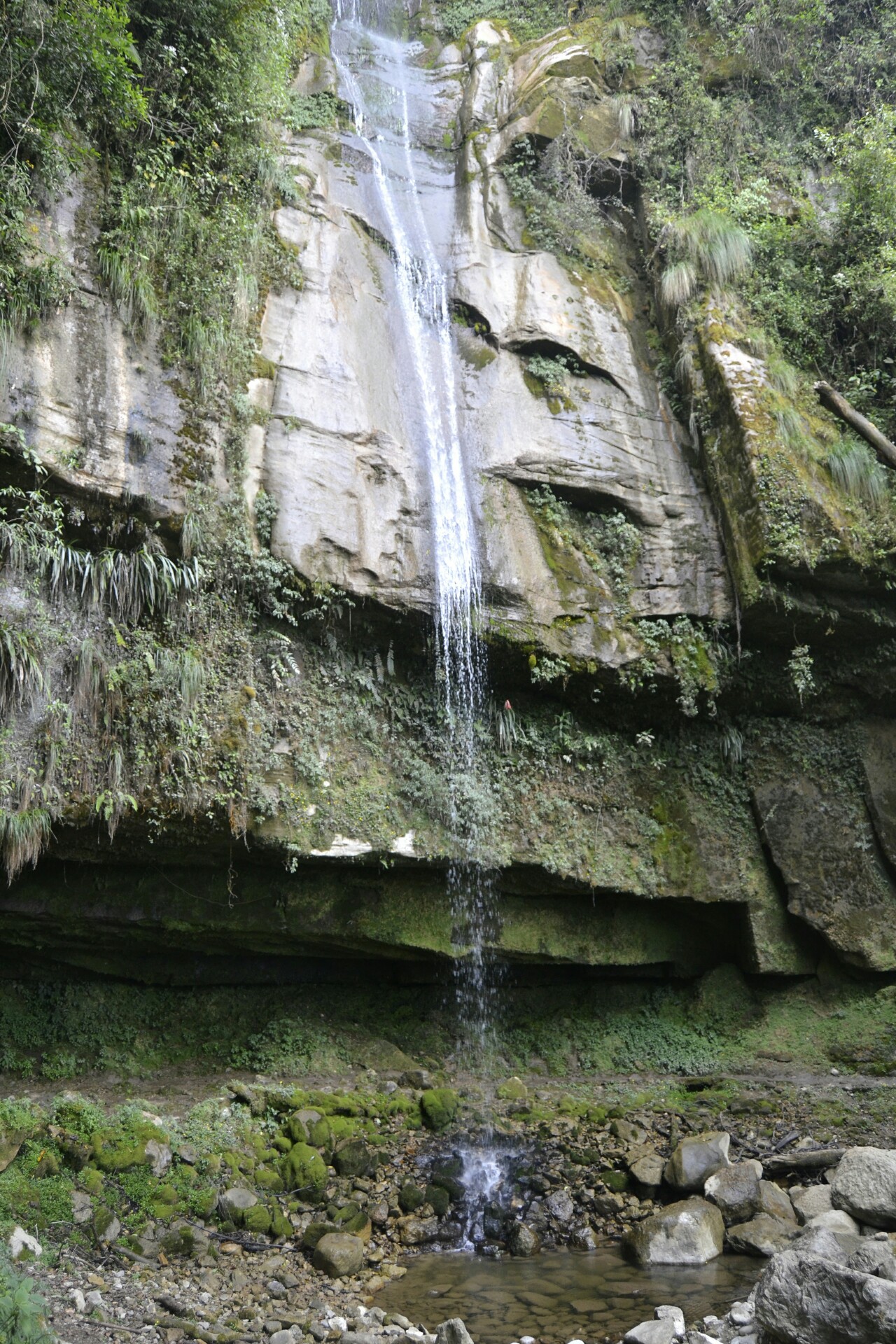 Aunque a primera vista pueda parecer que solo mide 20 metros de altura, realmente si levantamos la mirada y nos fijamos bien veremos que el agua comienza a caer desde mucho más arriba y que la catarata tiene varios pequeños saltos hasta llegar a su fin que es por donde pasamos nosotros.