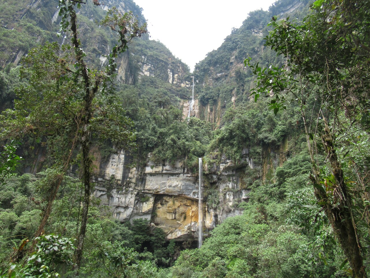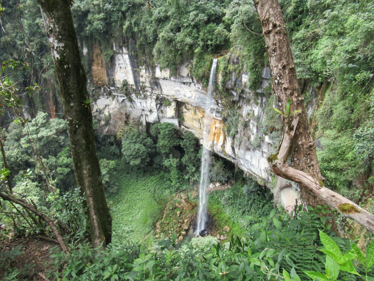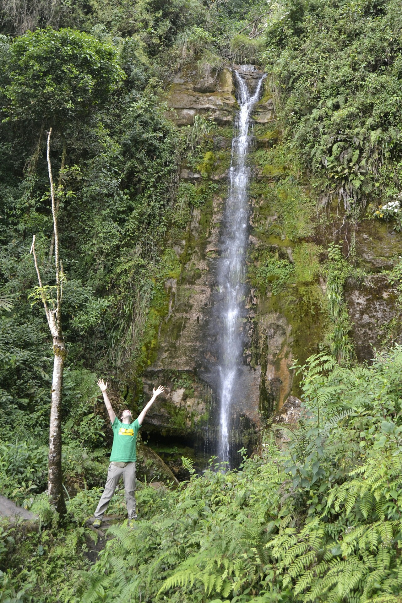 Solo hay que caminar unos minutos para poder ver el espectáculo de la Catarata Yumbilla con sus magníficos y altísimos primeros tramos.