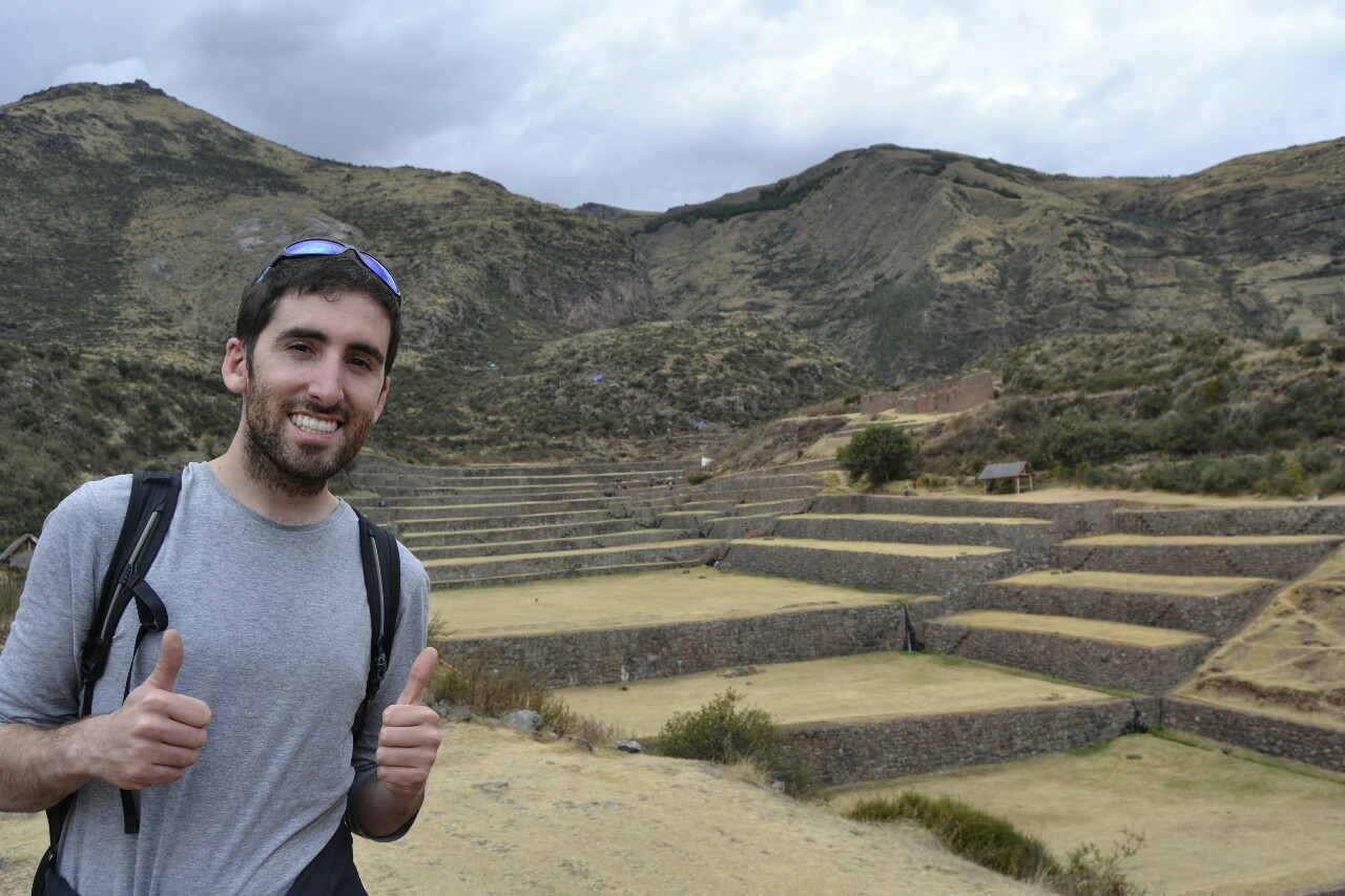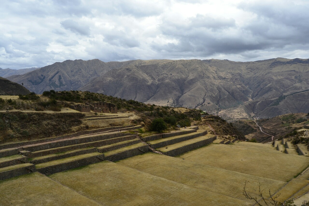 Lo primero que se ve son las ruinas más bajas, que forman sin duda una vista más que impresionante: enormes terrazas Inca para la agricultura (¡las primeras de muchas que veríamos en el viaje!) irrigadas por canales de piedra aún en funcionamiento.