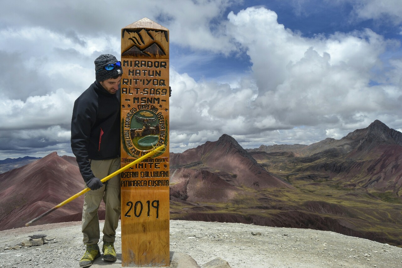 Aquí el cartel decía que estábamos a 5069 metros (y que el mirador se llama Hatun Rit’iyoq), así que sin quererlo acababa de superar en otros 40 metros mi máximo personal de altitud.