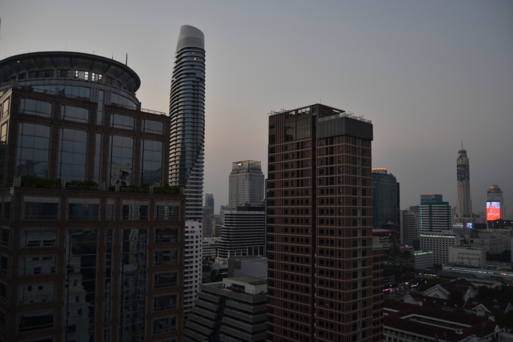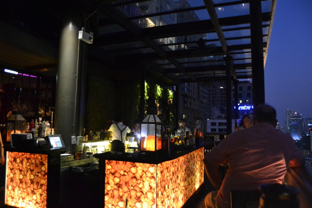 Había leído que la del Hotel Muse (Speakeasy Rooftop Bar) no era excesivamente cara y que además había un descuento si ibas antes de las 18.30, así que allí fui, a la terraza en la planta número 26 a tomar unos filetitos enanos de solomillo de cerdo con puré de patatas muy ricos pero que me costaron 300 Baht.
