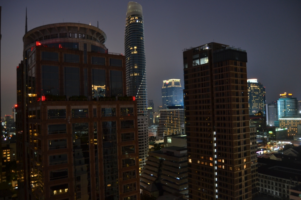 Al menos la terraza era chula y las vistas de los demás rascacielos estaban bien. Cuando ya me cansé de mirar hacia el infinito, pagué la cuenta, y pedí un taxi por Grab (tenía necesidad de algo de aire fresco) que por 150 Baht me llevó de vuelta al hostal donde tuve la habitación entera para mí.