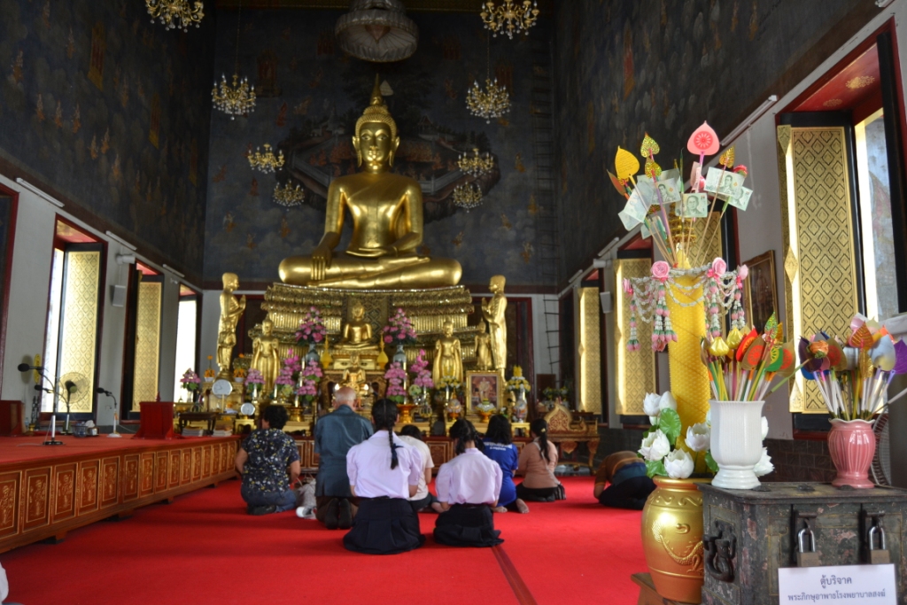 Una vez instalado en el hostal, me di una ducha rápida para espabilarme, preparé la mochila de «explorar» y a las 10 de la mañana me dispuse a caminar hacia dos templos importantes pero pequeños y que quedaban cerca del alojamiento y del canal Khlong Saen Saeb.