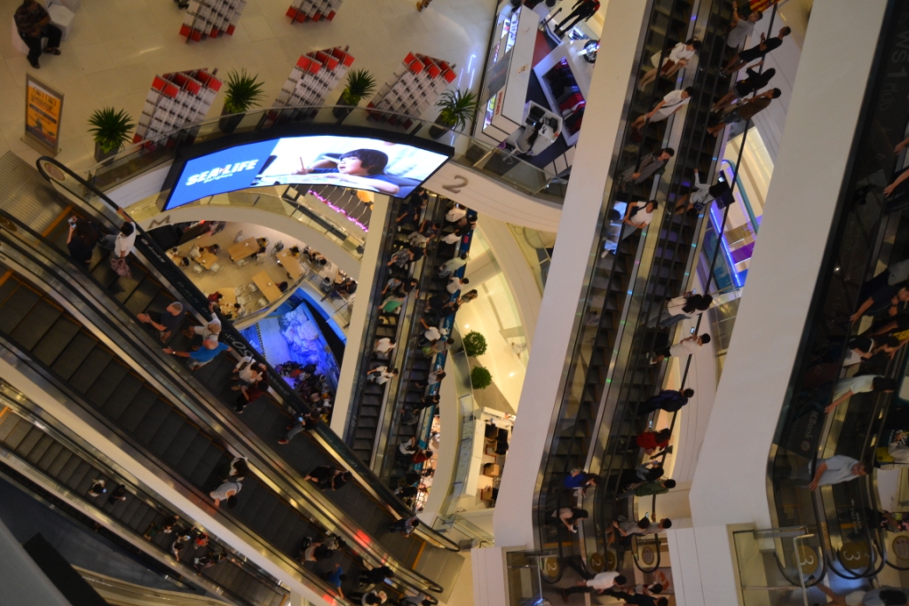 Mientras subía las escaleras, fui viendo todo tipo de tiendas típicas que por supuesto no podían faltar en semejante lugar (Zara, H&M, Massimo Dutti, etc.). Evidentemente no era un centro comercial para el tailandés medio.