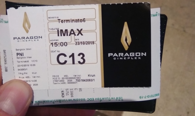 Busqué en Internet la cartelera y encontré un cine Imax con muy buena pinta en el enorme y modernísimo centro comercial Siam Paragon. Además, estaban poniendo la nueva película de Terminator, ¡incluso antes de que se estrenase en España!