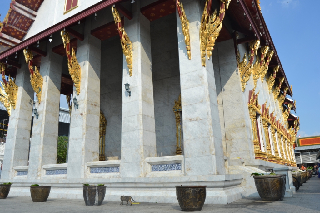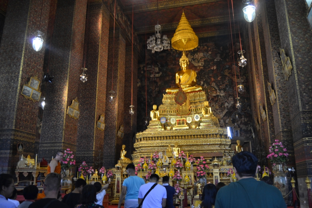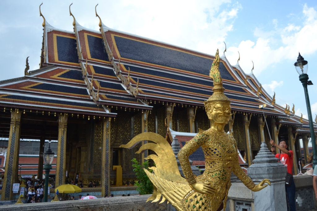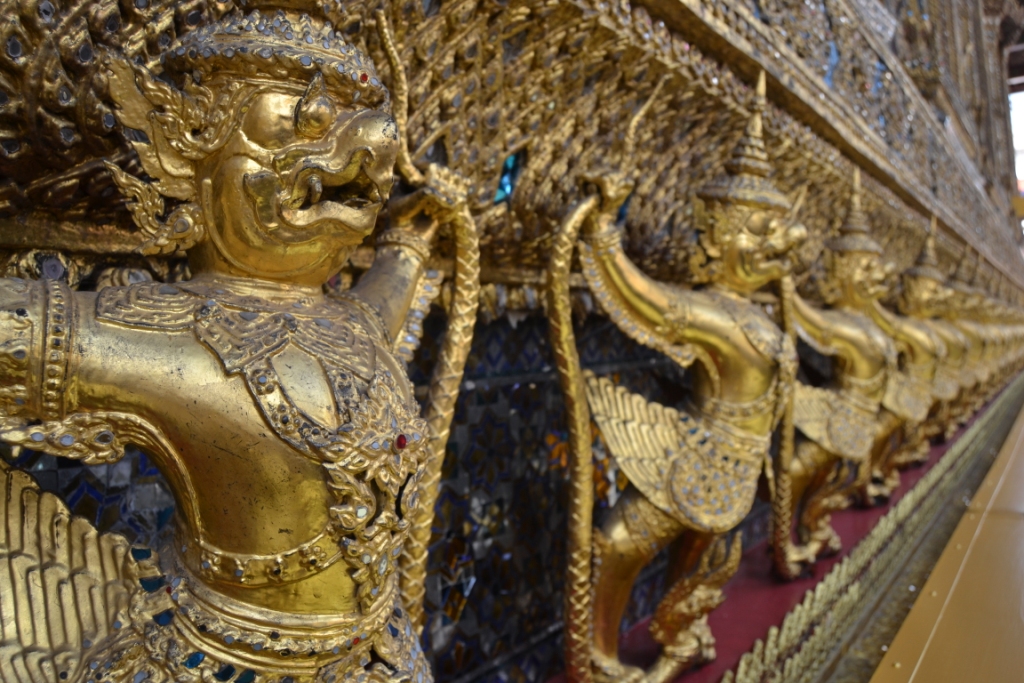 Dentro del bot la sensación era como la guerra en cuanto a gente, así que me dediqué más a fijarme en las paredes exteriores, decoradas con 112 garudas doradas (que representan al dios Indra salvando el mundo).