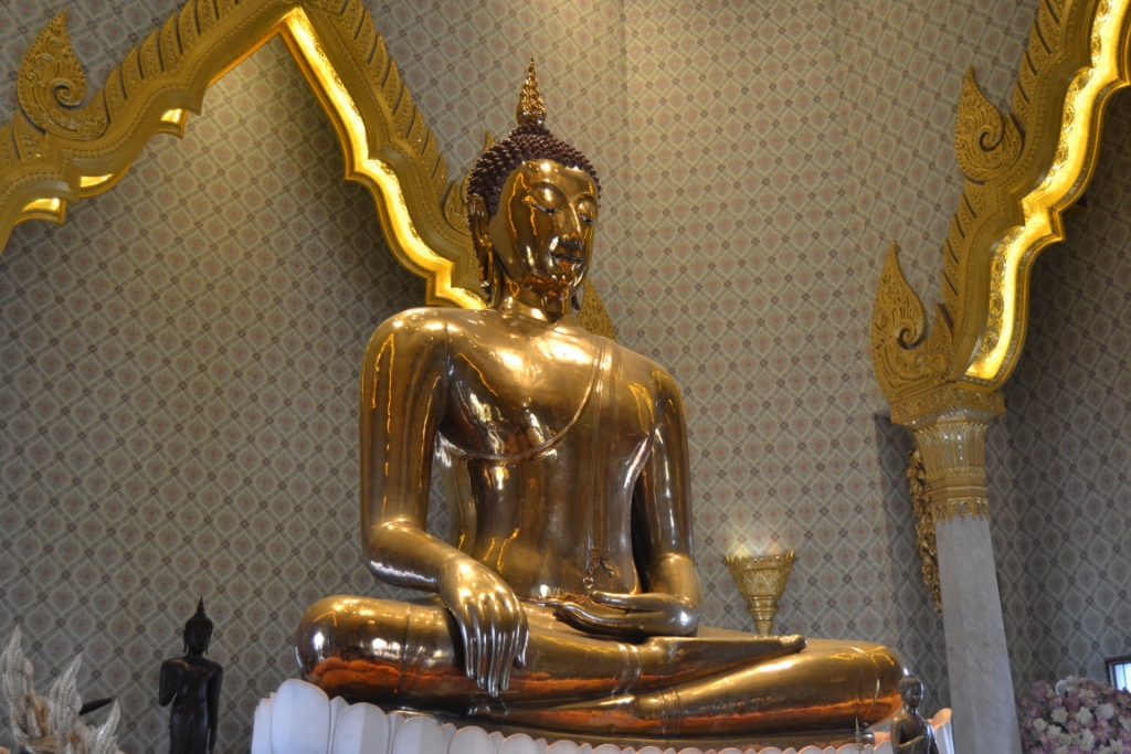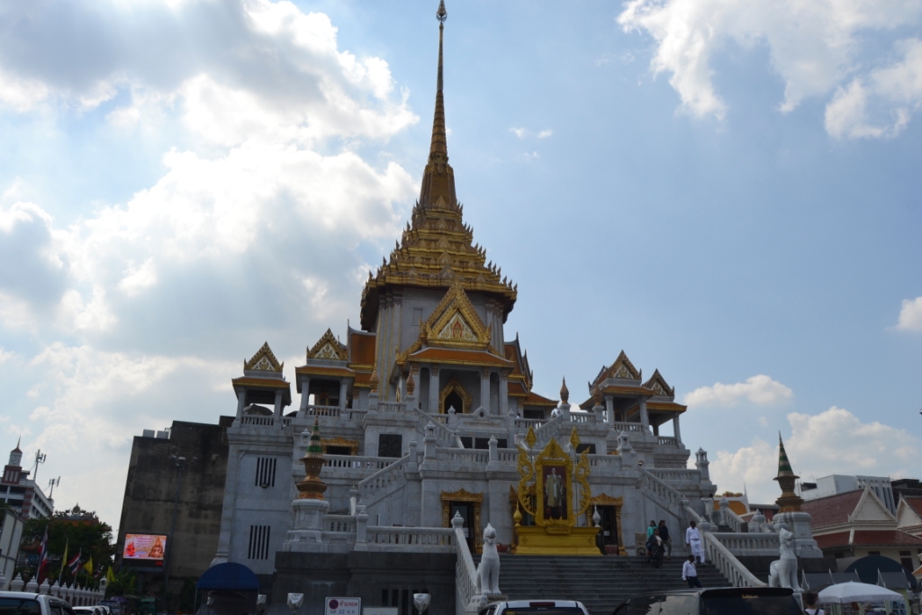 Teniendo en cuenta donde me había dejado el metro, parecía que lo más lógico era empezar la visita por el Wat Traimit, un templo blanco y dorado rodeado de calles infestadas de tráfico continuo que destaca fundamentalmente por el tesoro de su interior: El Buda de Oro.