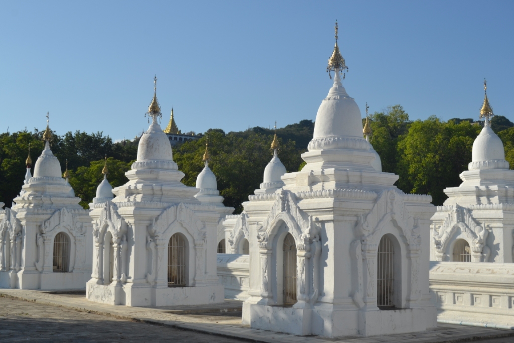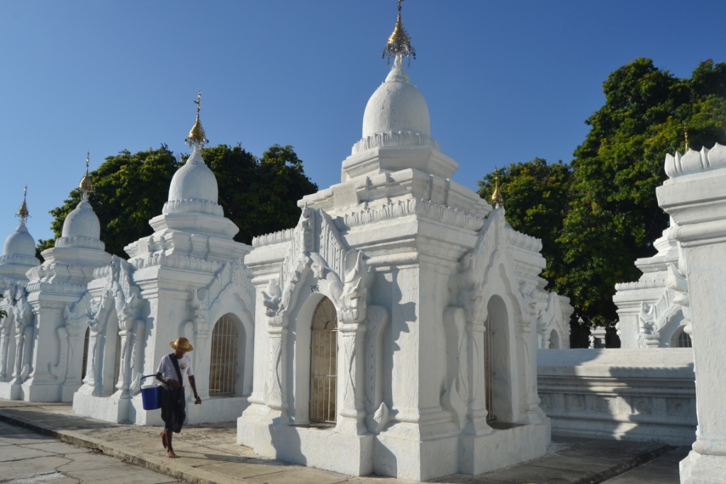 Desde Sagaing pusimos rumbo directo al centro de Mandalay para visitar la Kuthodaw Pagoda, una de las más llamativas de la capital del norte.