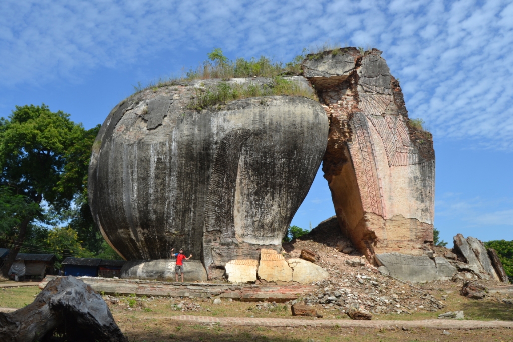 Estos dos en concreto tenían unas dimensiones acordes a la pagoda soñada por el Rey Bodawpaya, y siguen resultando bastante impresionantes a pesar de que sus cabezas se hayan perdido para siempre (en una de las fotos estoy yo para servir como escala).