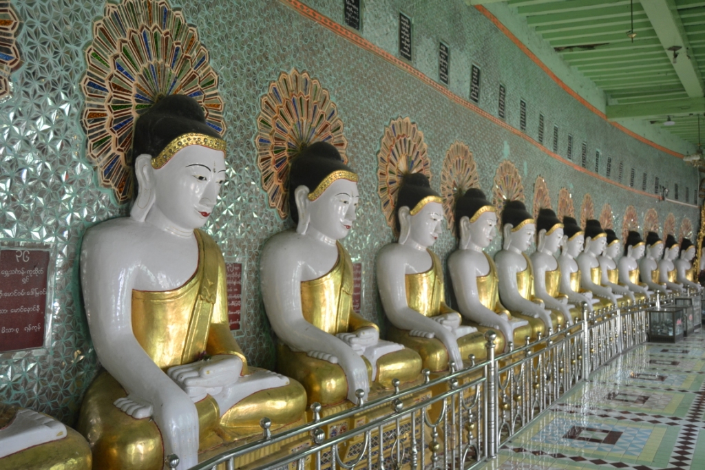 La pagoda en sí no destaca demasiado sobre otras pagodas de Mandalay (esculturas de Buda aderezadas con luces de Neón horteras y la decoración habitual que les acompaña). Sí que el edificio visto desde fuera es bastante más bonito, pero realmente lo mejor de esta colina son las vistas.