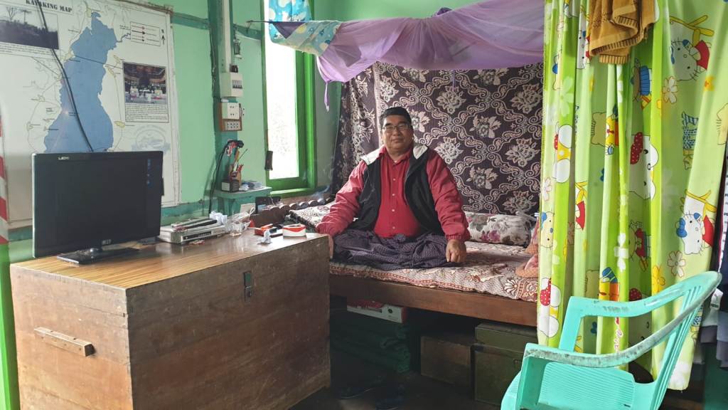 El autobús fue sorprendentemente puntual y a las 8 en punto me dejó en la puerta del Indaw Mahar Guesthouse. El dueño, que es un señor muy gracioso que se pasa el día entero en la entrada encima de un cojín viendo vídeos y películas de comedia en la tele, me estaba esperando y me llevó a la habitación.