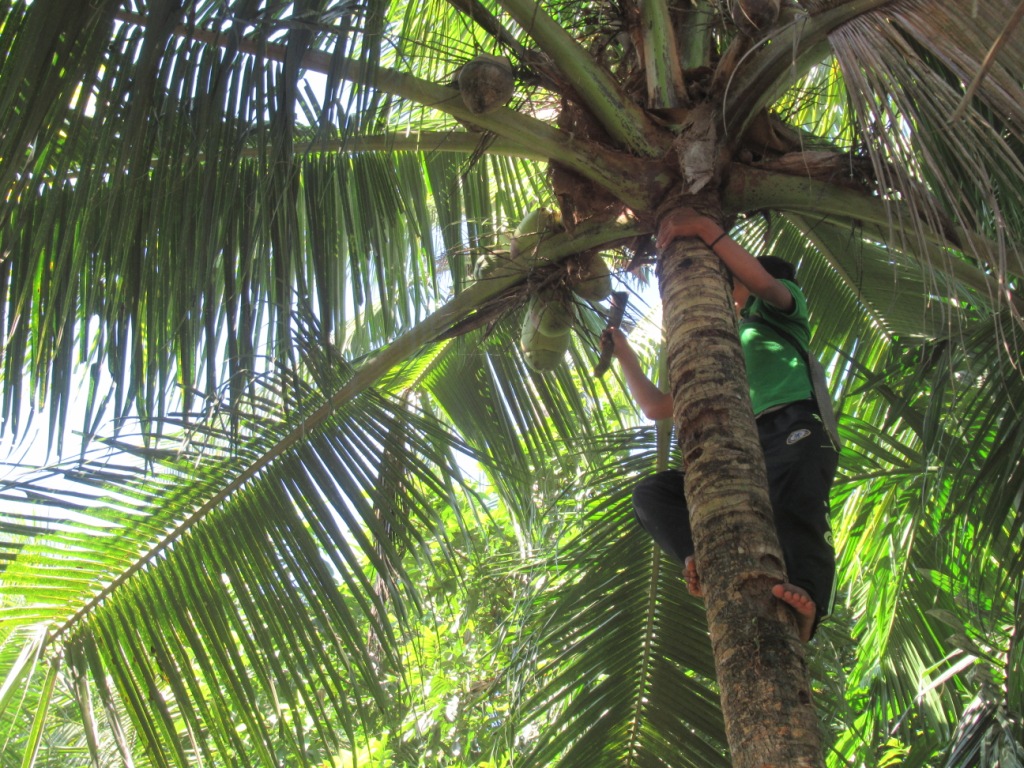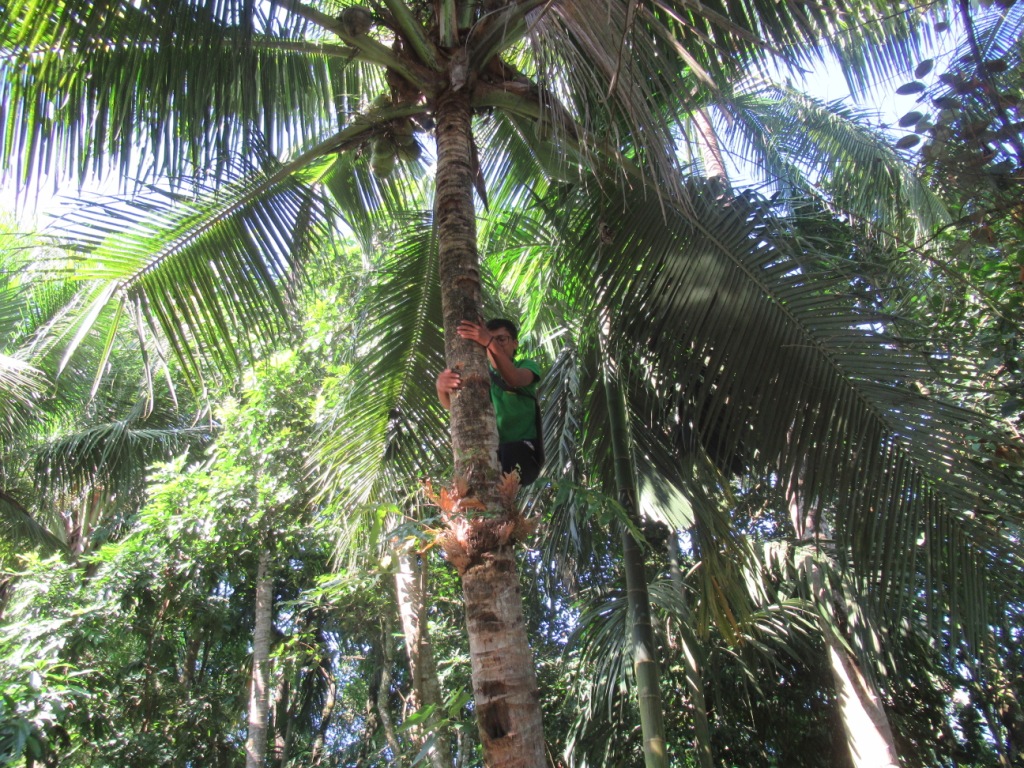 Cuando finalmente llegó Pawley, empezó a trepar a una palmera (igual que yo en Perú unos meses antes, pero él sin cuerdas ni nada) para coger unos cocos.