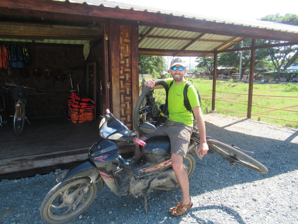 Lo normal para estos trekkings es ir en barco hasta el poblado y empezar el trekking allí, pero al estar yo solo se me hacía carísimo pagar el barco, así que llegamos a un acuerdo intermedio en el que iríamos hasta el pueblo en la moto de Pawley (15000 Kyats), haríamos el trekking (15000 Kyats) y, finalmente, comeríamos en una de las casas que preparan todo de su propia huerta (6000 Kyats).