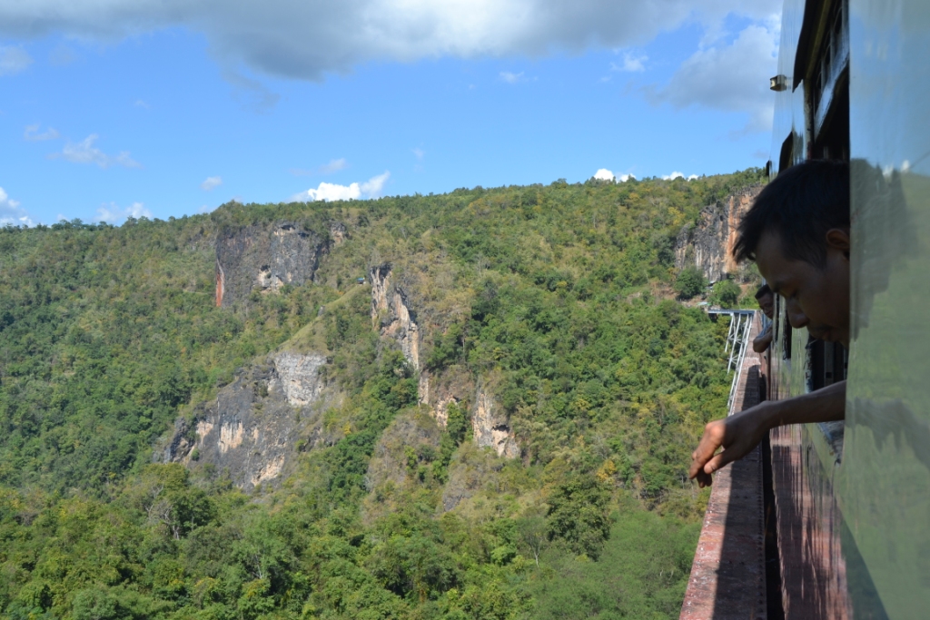 Pero realmente lo que nos impulsa a muchos a coger ese tren (además de los paisajes, claro está) es el ansiado momento en el que el tren cruza del famoso Viaducto de Gokteik situado a 102 metros de altura sobre el río Dokhtawady.