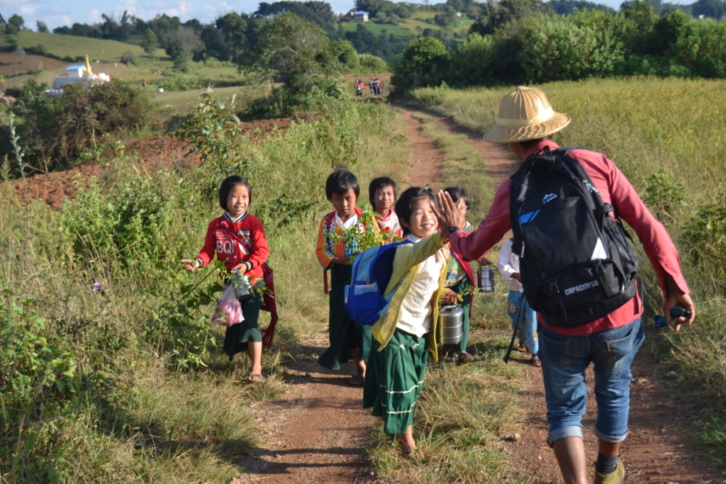 Después de la demostración práctica del Betel seguimos caminando por tribus Pa-O y campos de arroz hasta que llegamos a la parte más montañosa de todo el trekking.