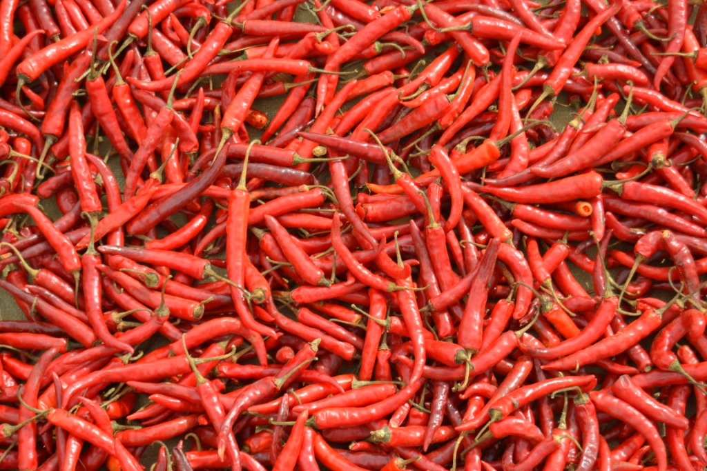 Mirásemos hacia donde mirásemos podíamos ver miles y miles de estos pimientos rojizos madurando al sol.