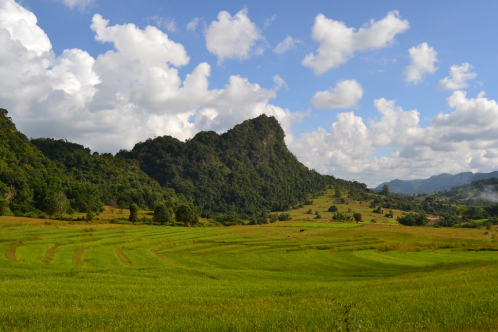 A medida que avanzaba el día fuimos pasando por diferente poblados (Tribus Danu y Pa-O) y el cielo iba volviéndose más y más azul.