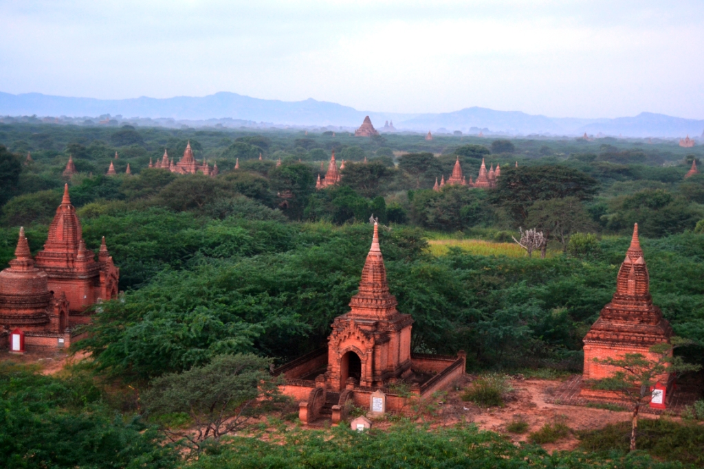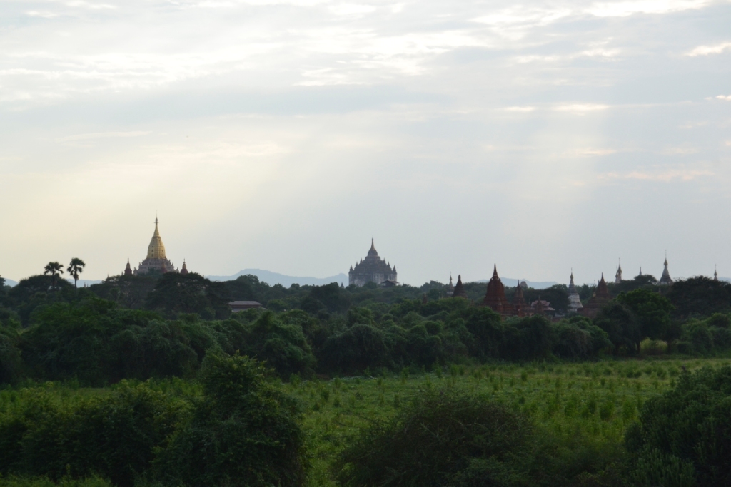 Se llama Tuyin Taung Pagoda, y no vale la pena: está lejos, hay que hacer un trozo a pie cuesta arriba y las vistas son normalitas del todo porque está muy lejos de todas las ruinas. Además, el día parecía que iba a estar nublado y la niebla mañanera no dejaba ver gran cosa, así que nos volvimos al hostal con el rabo entre las patas.