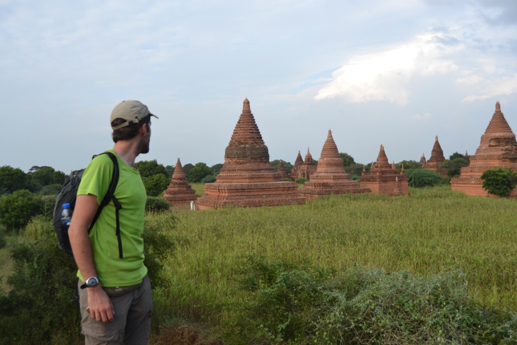 Aprovechando la bonita luz de las horas finales del día (que bañan a los ladrillos de los templos con unas tonalidades preciosas) volví hacia la zona en la que había estado el día anterior con Gabriel (la del “muro”), para aprovechar otro momento de tranquilidad con bonitas vistas de las estupas…