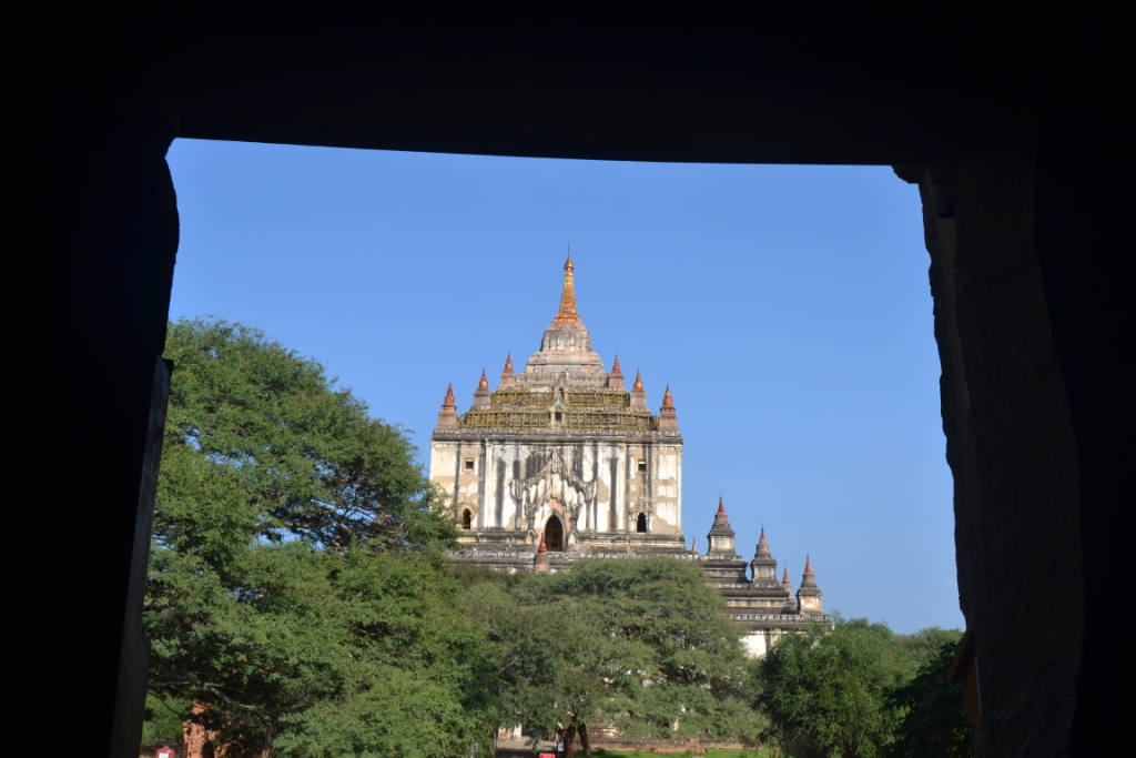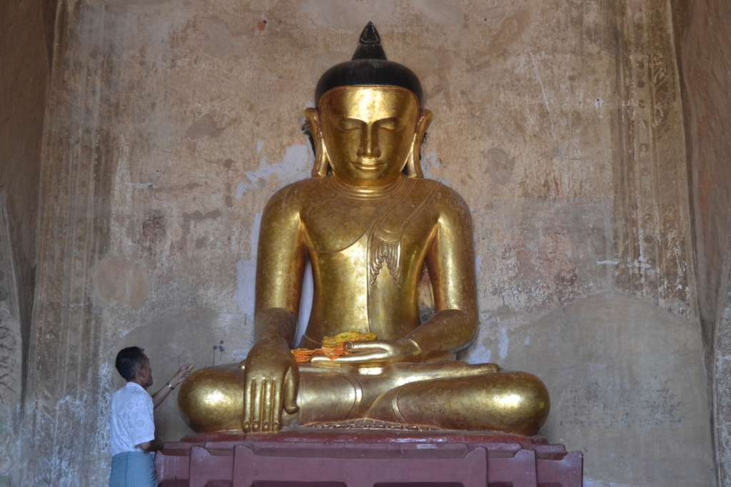 Lo primero que hicimos fue acceder a su interior, pero nos quedamos un poco chafados porque nada de lo que vimos era acorde a la monumentalidad del exterior… Así que este es uno de esos templos a los que compensa mirar desde fuera y dejarse llevar a los tiempos del antiguo Reino de Bagan.