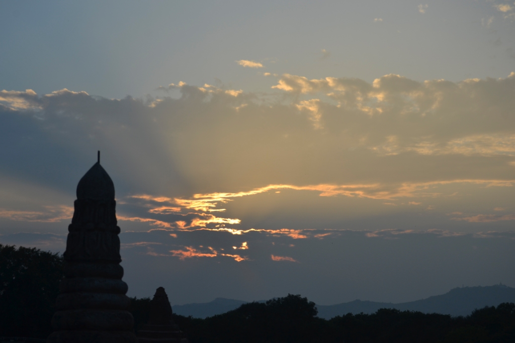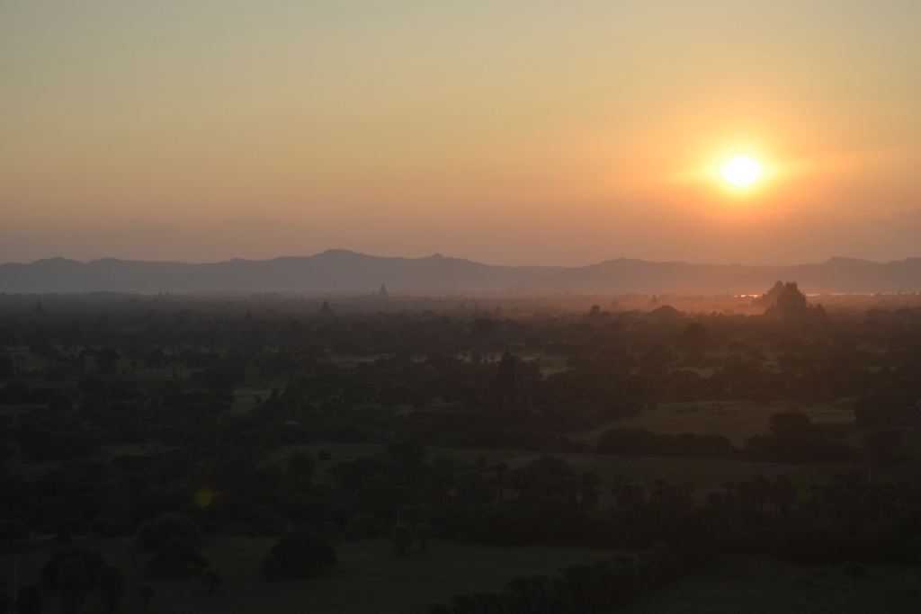 Menos mal que yo tenía mi hueco con vistas a las montañas por las que se iba a poner el sol y pude recrearme con el momento y la inmensidad de Bagan.