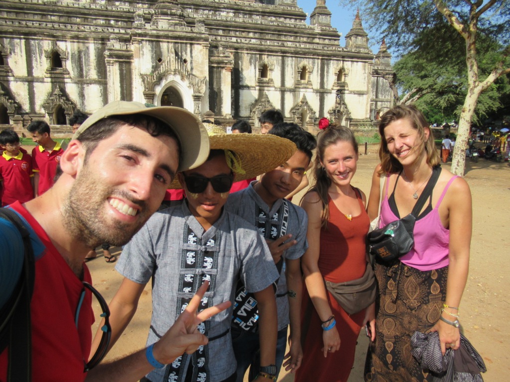 La gente local que visita Bagan aprovechando la fiesta del Taungzamone dichoso, no quería perder la oportunidad de fotografiarse con los “exóticos europeos”. ¡Qué gracia! El mundo al revés.