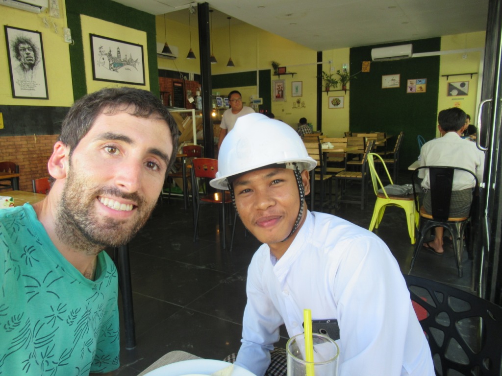 Al salir de la pagoda fui hacia el restaurante en el que había quedado con Nyi Nyi Zaw, el chico de Mrauk U que vive en Yangon y trabaja en la organización para la paz de Rakhine y que lleva la página de Facebook (Mrauk U – The Golden Land of Arakan) a través de la cual contacté con él.